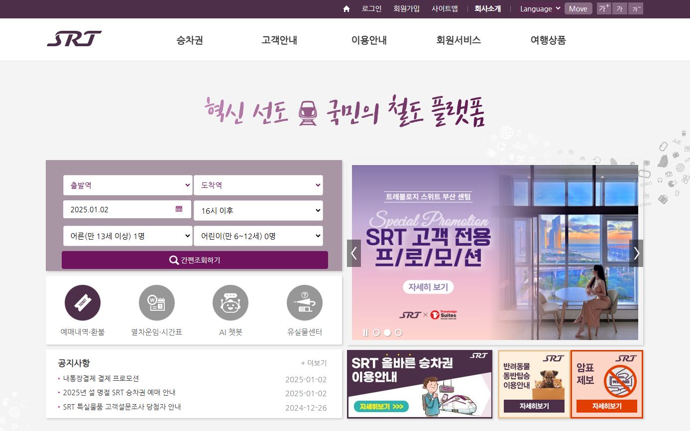 SRT 예매는 명절이나 성수기에는 예매기간이 다르기 때문에 예매일정 및 예매방법 등을 미리 알고 있어야합니다. 이번 설연휴 기간에도 SRT 예매 경쟁이 치열할 것으로 예상되기 때문에 SRT홈페이지 미리 가입 후 예매 일정을 미리 확인하세요.