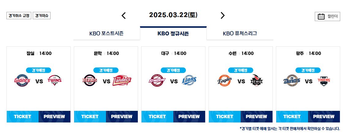 2025 KBO 프로야구 시즌 일정, 티켓 예매 오픈일, 실시간 중계보기